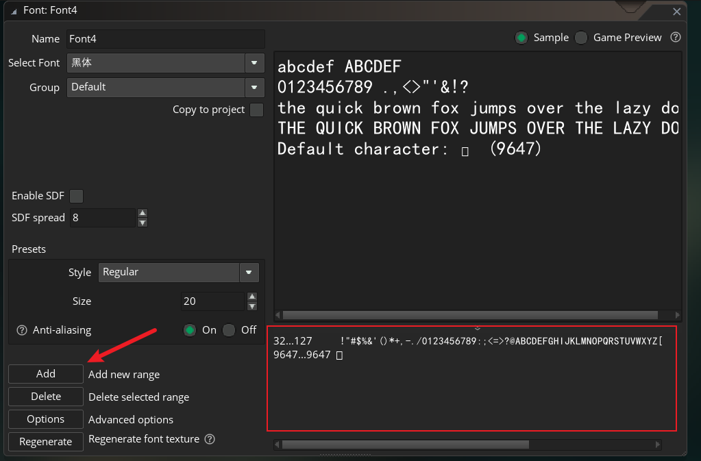 - 在【编辑字体】页面中点击【Add】按钮。