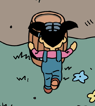 (人物已处于房子后面)
