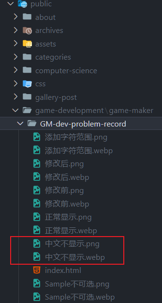 原因解释: hexo g 执行完之后, public 只有原生图片,而 webp 文件则是通过 hexo s 生成的,所以执行完 hexo s 之后目录里面才会存在 webp 格式